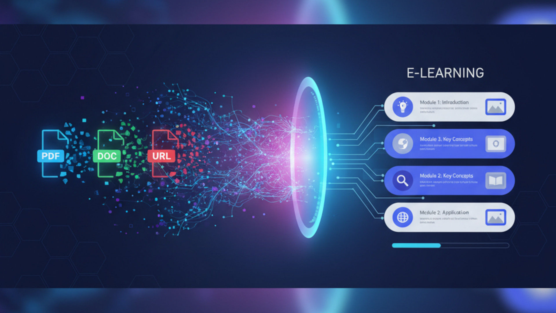 Upload documents or URLs and watch AI create structured SCORM courses with learning objectives, content modules, and custom images.